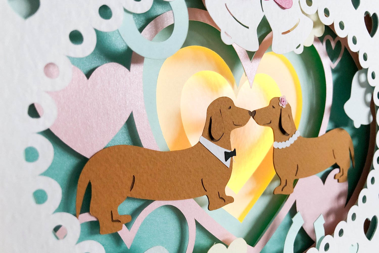 Wedding 3D Shadow Box SVG Sausage Dogs Layered Paper Cut
