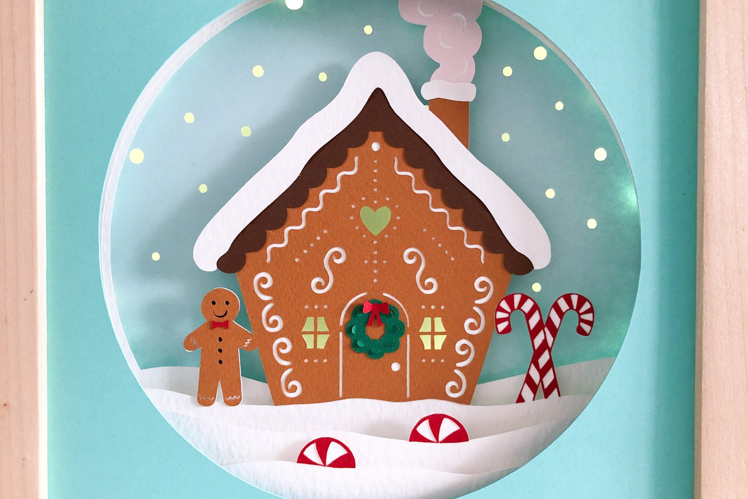 Gingerbread House 3D Christmas Shadow Box SVG Paper Cut