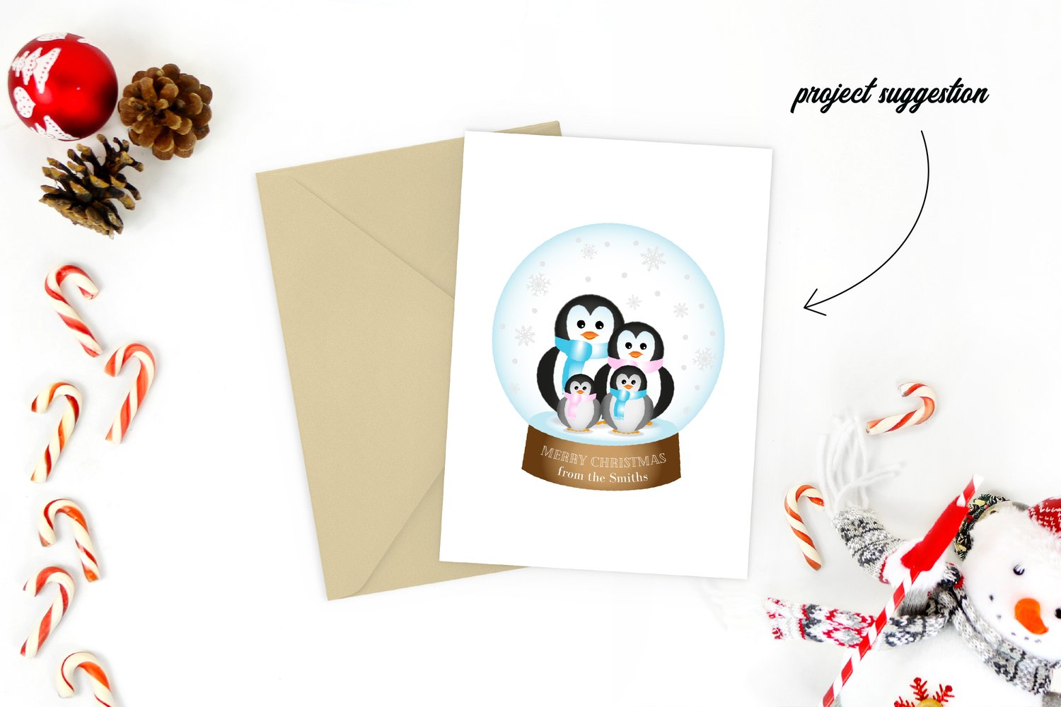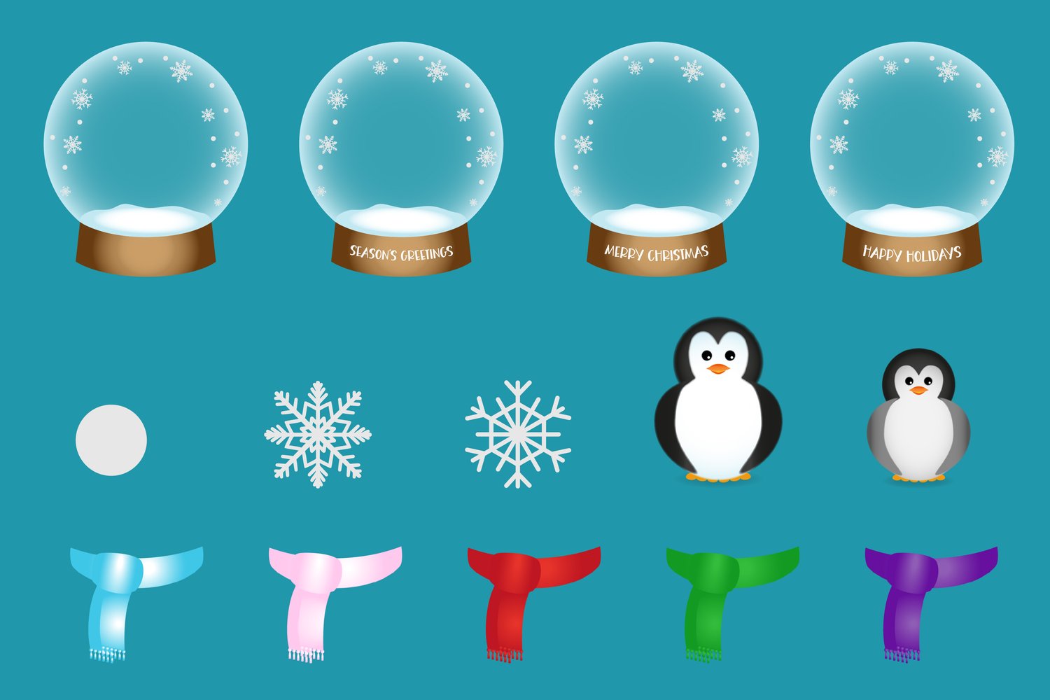As well as the adult penguins and various colour scarves, there are four versions of the snow globe. Three have festive greetings already typed on. One is blank for you to add your own text (please note no fonts are included in the download).