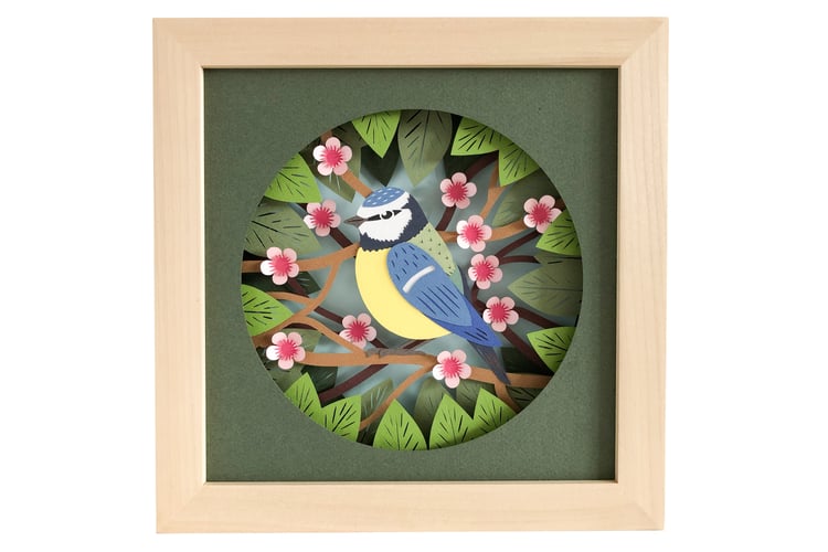 There are handcutting templates (PDF) to create an 8” x 8” version or a 9” x 9” version of the shadow box.